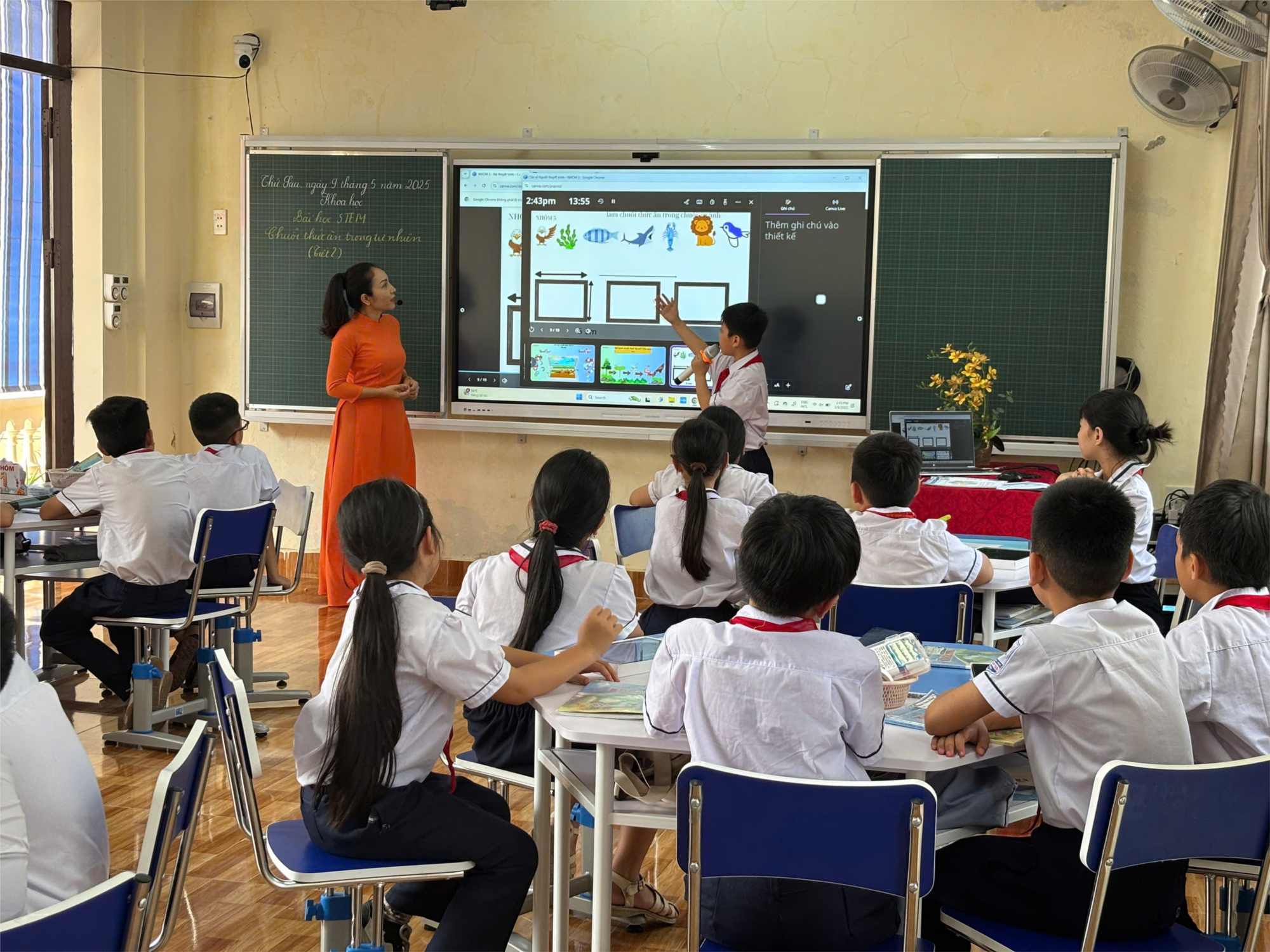 Theo kế hoạch của cụm Hà Sen, ngày 09/5/2025 tổ chức sinh hoạt chuyên môn cụm lần 3 tại trường TH Nguyễn Văn Trỗi nhà trường đã sử dụng phòng học thông minh vào tiết dạy môn Khoa học lớp 5 - Bài học Stem: Chuỗi thức ăn trong tự nhiên do cô giáo Nguyễn Thị Lan Phương - giáo viên chủ nhiệm lớp 4A4 lên tiết. Trong tiết dạy cô giáo đã sử dụng nhiều phương pháp dạy học vào bài và sử dụng một số phần mềm để học sinh làm như: canva, quizizz, … trên Ipad. Đặc biệt là học sinh làm bài được tương tác với ti vi thông minh, …