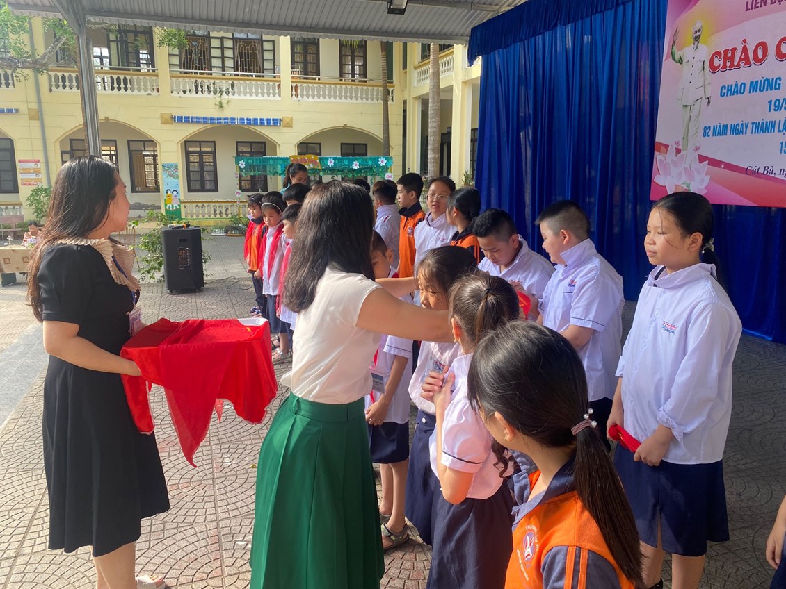 Tiếp theo là hoạt động kết nạp đội cho học sinh khối 4,5 nhân kỉ niệm 133 năm ngày sinh nhật Bác. 82 năm ngày sinh nhật Đội TNTP HCM.
