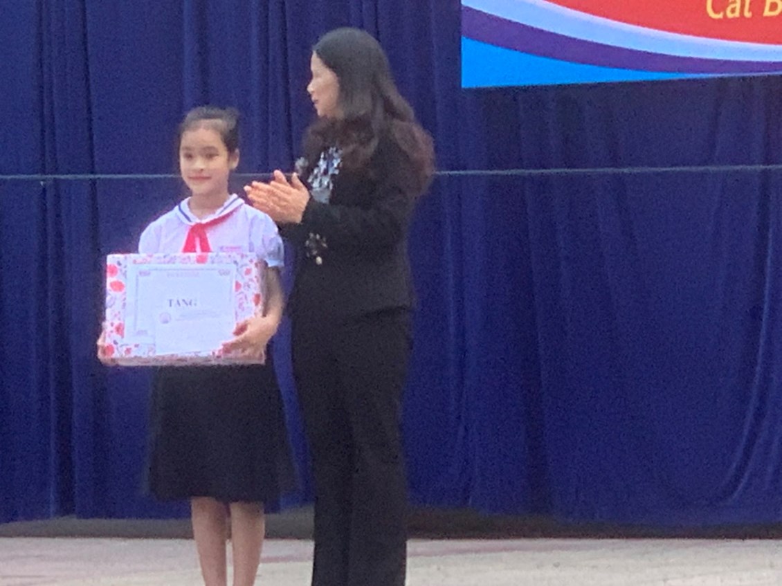 Nhân dịp kỷ niệm 60 năm phong trào Nghìn việc tốt (24/3/1963 - 24/3/2023), nhà trường quyết định trao thưởng cho em Thủy vì đã có những thành tích xuất sắc trong học tập và tích cực tham gia các hoạt động phong trào nhằm lan tỏa giá trị yêu thương và nâng cao tinh thần thi đua học tập tốt, rèn luyện chăm của Thiếu nhi Việt Nam.
