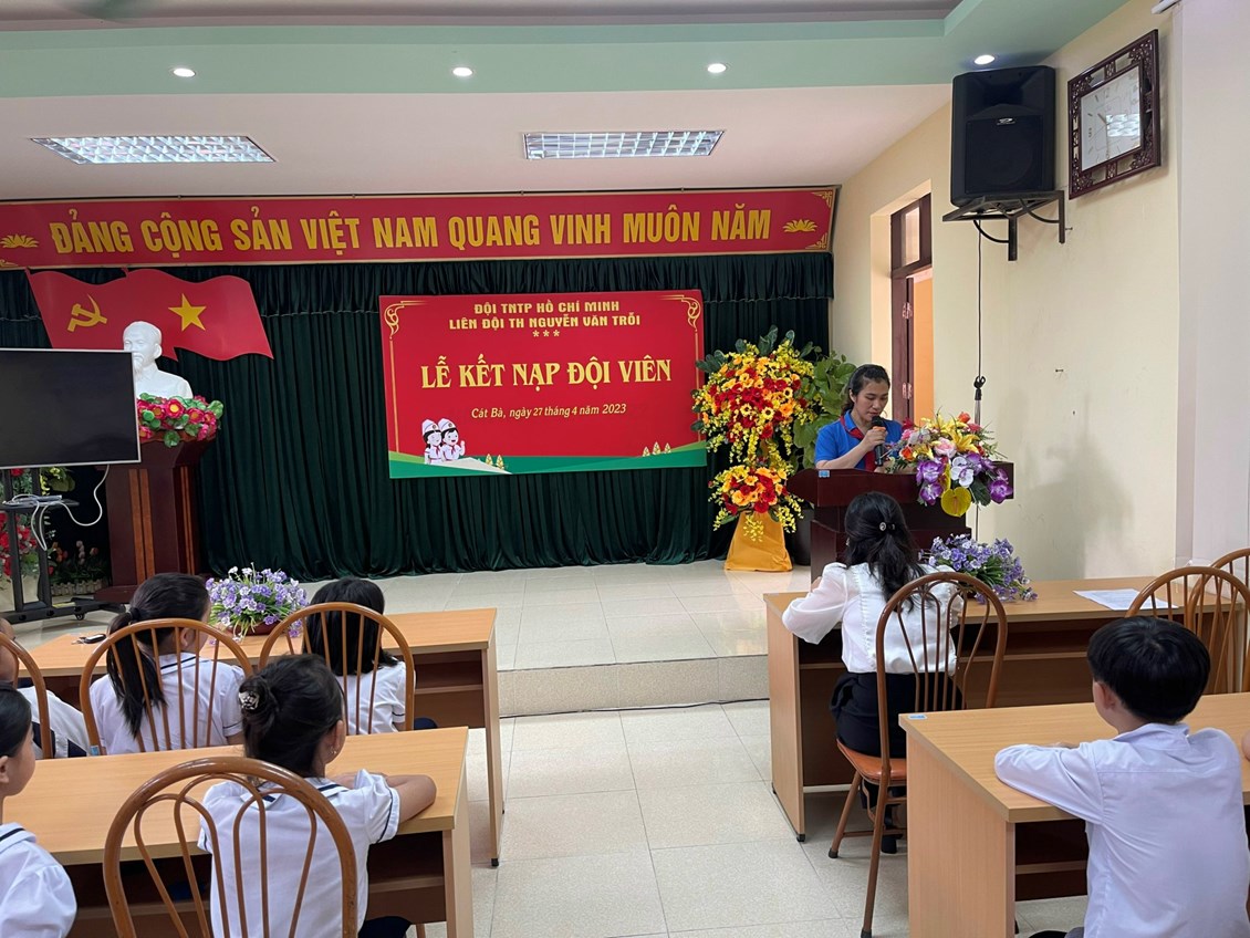 Trong không khí vui mừng của cả nước kỉ niệm 48 năm ngày giải phóng miền Nam thống nhất đất nước (30/4/1975 - 30/4/2023), được sự nhất trí chỉ đạo của HĐĐ huyện, chi bộ, BGH nhà trường và Hội đồng Đội Thị trấn Cát Bà. Hôm nay, Liên đội TH Nguyễn Văn Trỗi tổ chức lễ kết nạp Đội cho các bạn học sinh Khối 3 và công nhận chi đội mới.