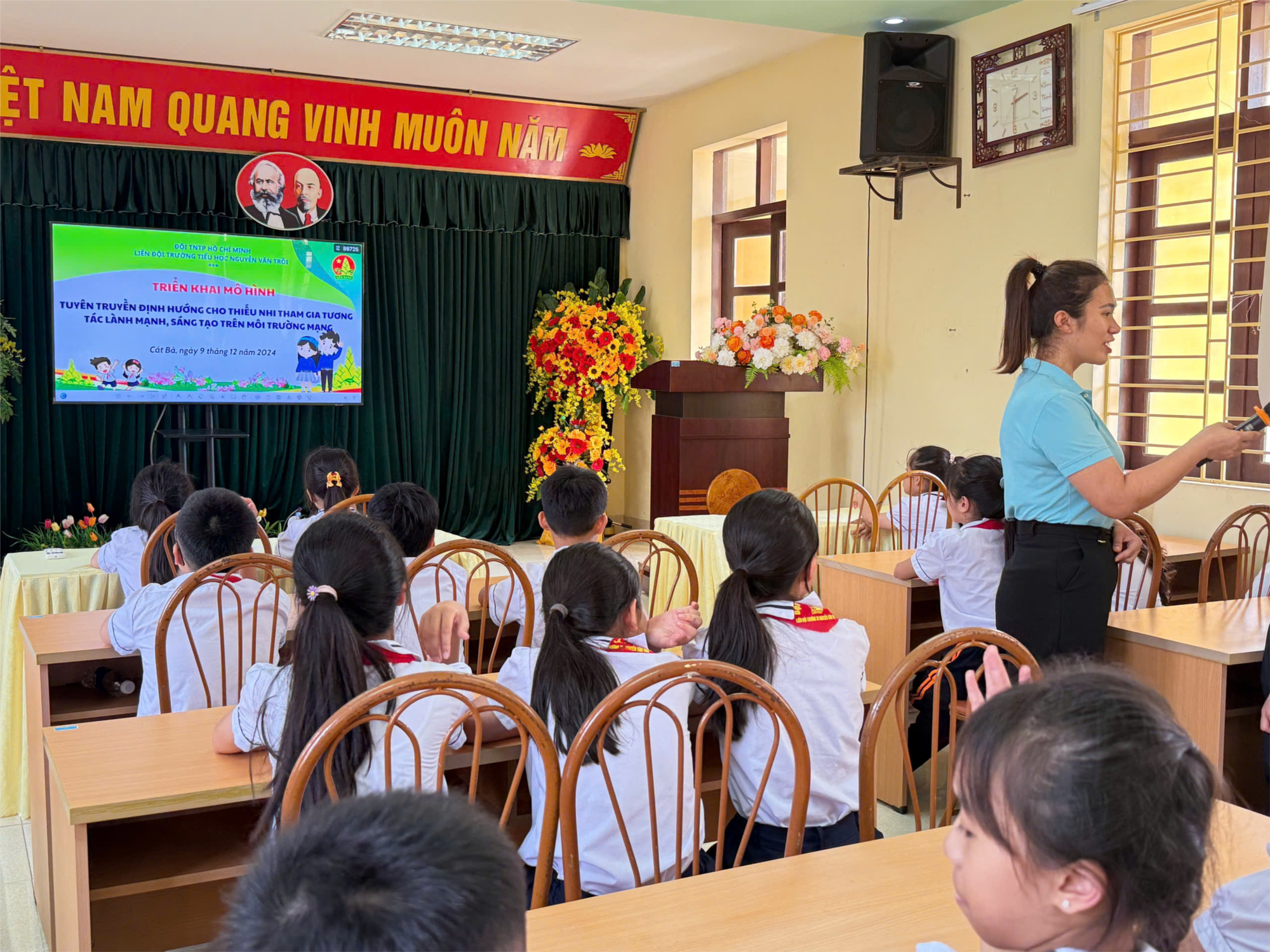 Góc tuyên truyền được thiết kế với tranh ảnh, câu hỏi tương tác, QR code hướng dẫn kỹ năng phòng tránh rủi ro trên mạng và các bộ quy tắc ứng xử khi sử dụng mạng Internet.Bên cạnh đó, Liên đội còn phối hợp với phụ huynh tổ chức tọa đàm “Gia đình đồng hành cùng con trên môi trường số”, nhằm giúp cha mẹ hiểu hơn về các nguy cơ mạng, từ đó cùng nhà trường giáo dục các em sử dụng mạng đúng cách.