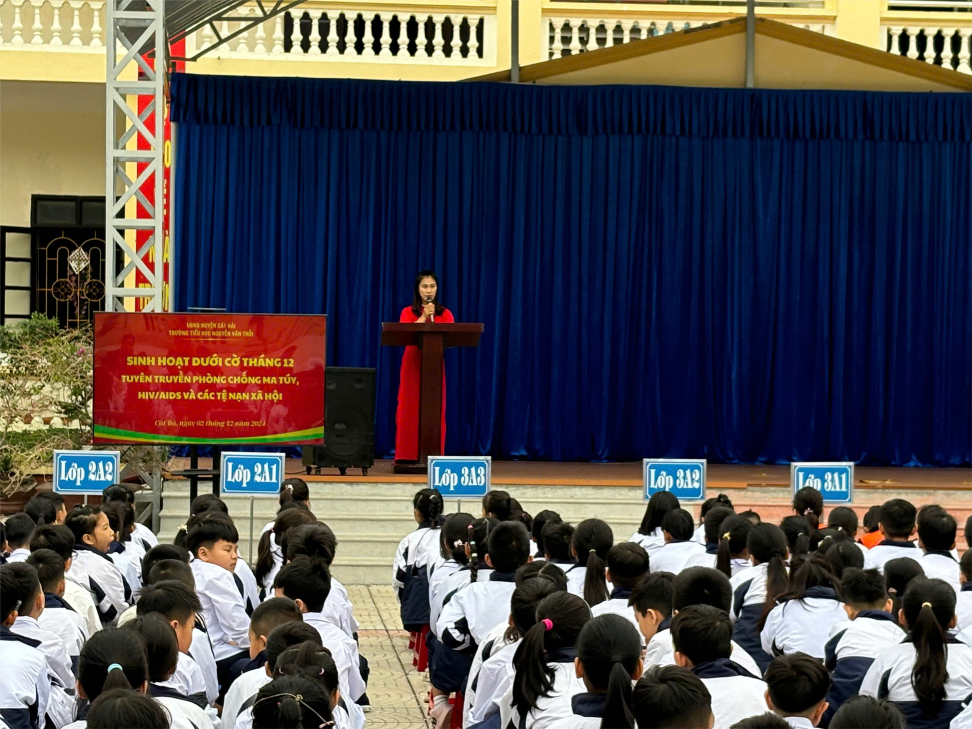 Sáng ngày 02/12/2024 trường TH Nguyễn Văn Trỗi tổ chức Sinh hoạt dưới cờ tháng 12 - Tuyên truyền cách phòng chống ma túy, HIV/AIDS và các tệ nạn xã hội cho tập thể CB, GV, NV và học sinh toàn trường.