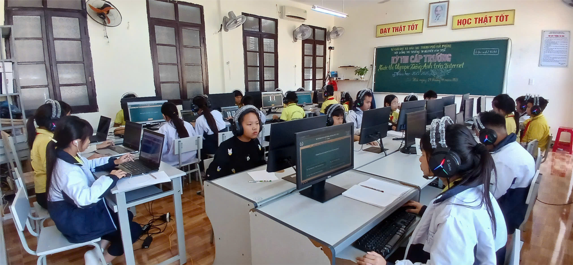 Cuộc thi diễn ra một cách nghiêm túc, không gian yên tĩnh bao trùm lên cả phòng thi. Ai nấy đều tập trung tối đa vào màn hình máy tính, cố gắng vượt qua 200 câu hỏi trong thời gian 30 phút. Tất cả những cảm xúc ấy đã làm nên một trải nghiệm đáng nhớ về cuộc thi IOE cấp trường.