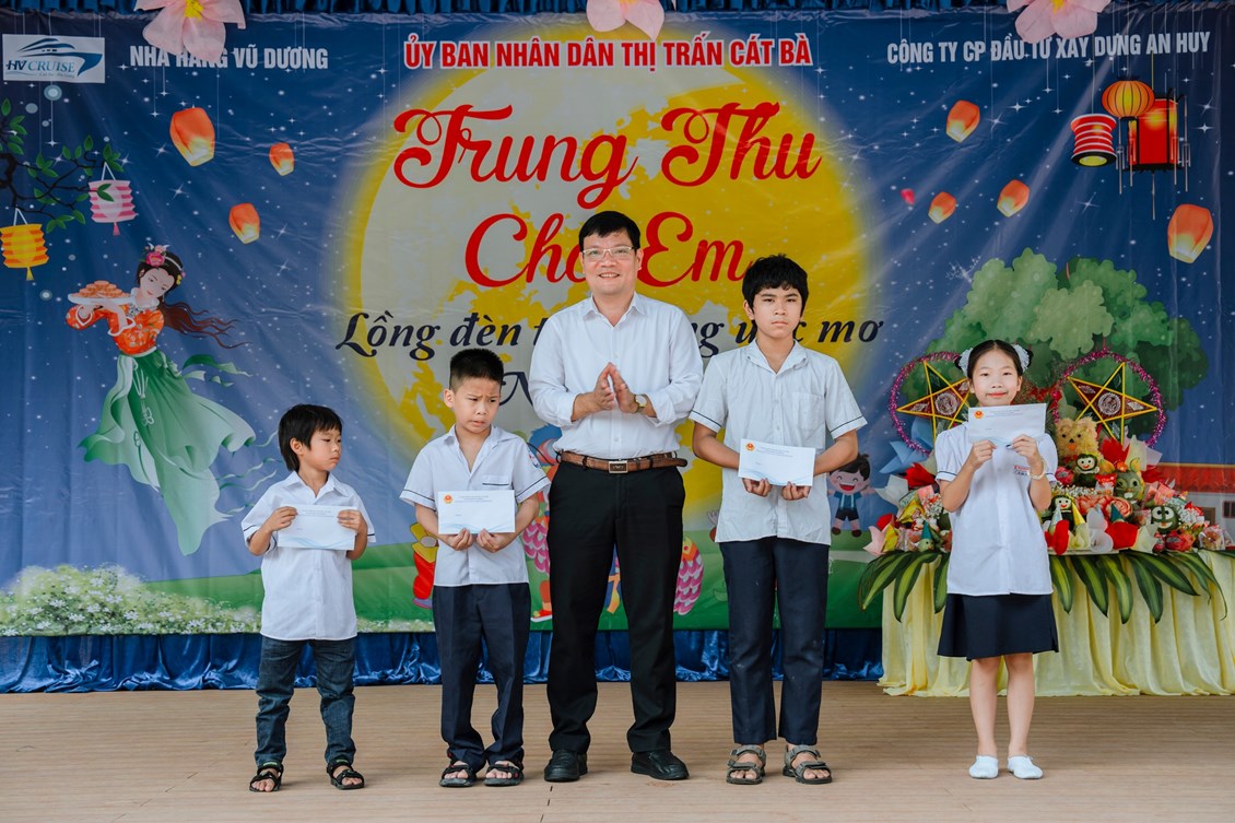 - Các nhà hảo tâm, nhà tài trợ đại điện đến từ Công ty du thuyền Giấc mơ Cát Bà, công ty An Huy, Nhà hàng Sunshine, nhà hàng Vũ Dương trên địa bàn Thị trấn Cát Bà