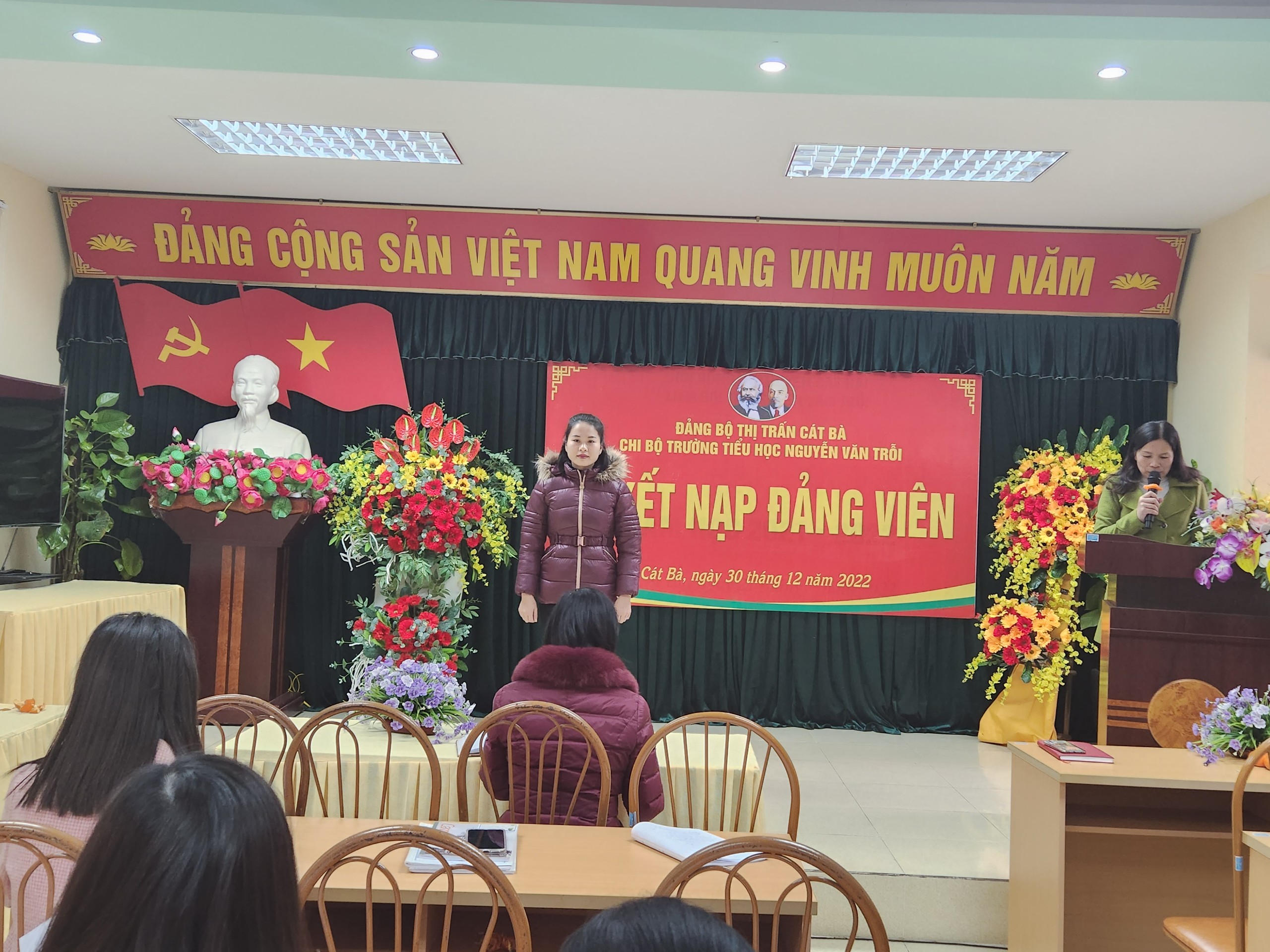 Hôm nay, trong không khí vui mừng đón chào Xuân Quý Mão 2023, chào mừng kỉ niệm 93 năm ngày thành lập Đảng cộng sản Việt Nam, chi bộ trường tiểu học Nguyễn Văn Trỗi long trọng tổ chức kết nạp quần chúng Lê Thị Thu Thủy vào Đảng cộng sản Việt Nam.