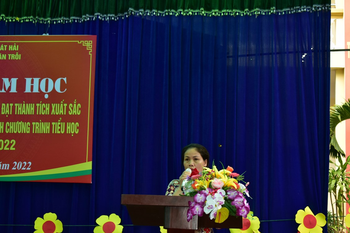 Nhà giáo Trương Thị Phương Thảo- Bí thư chi bộ, hiệu trưởng nhà trường vui mừng thông qua báo cáo một số kết quả mà nhà trường đã đạt được trong năm học: