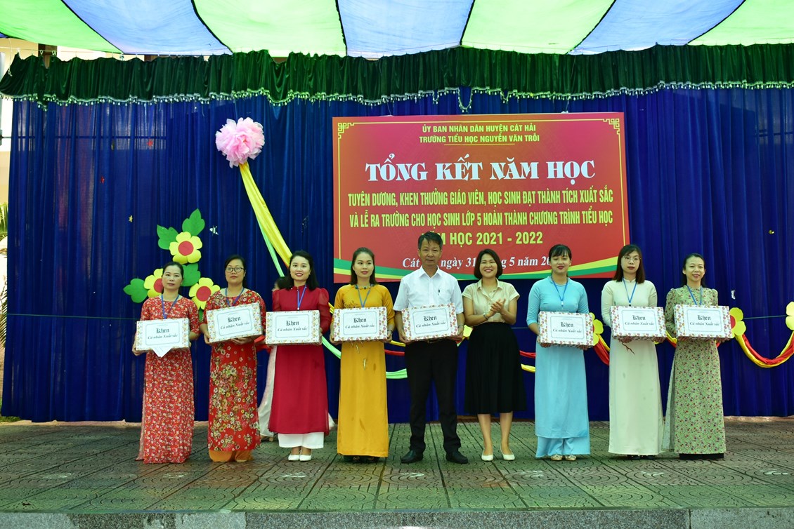 Tại buổi lễ có 08 giáo viên vinh dự được nhận thưởng cho các giải thưởng: Giáo viên có học sinh đạt giải cấp thành phố; Giáo viên đạt giải chữ viết đẹp.