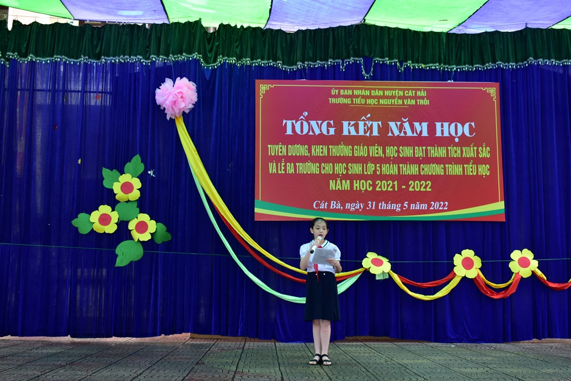 Và cuối cùng là nội dung ấn tượng và sâu sắc nhất. Phần chia tay, tạm biệt mái trường yêu dấu sau 5 năm học tiểu học của các bạn học sinh khối 5 niên khóa 2017-2022. Các bạn đã gửi lời tri ân, kính tăng thày cô và các bạn nhỏ lớp sau hai tiết mục văn nghệ đặc sắc.