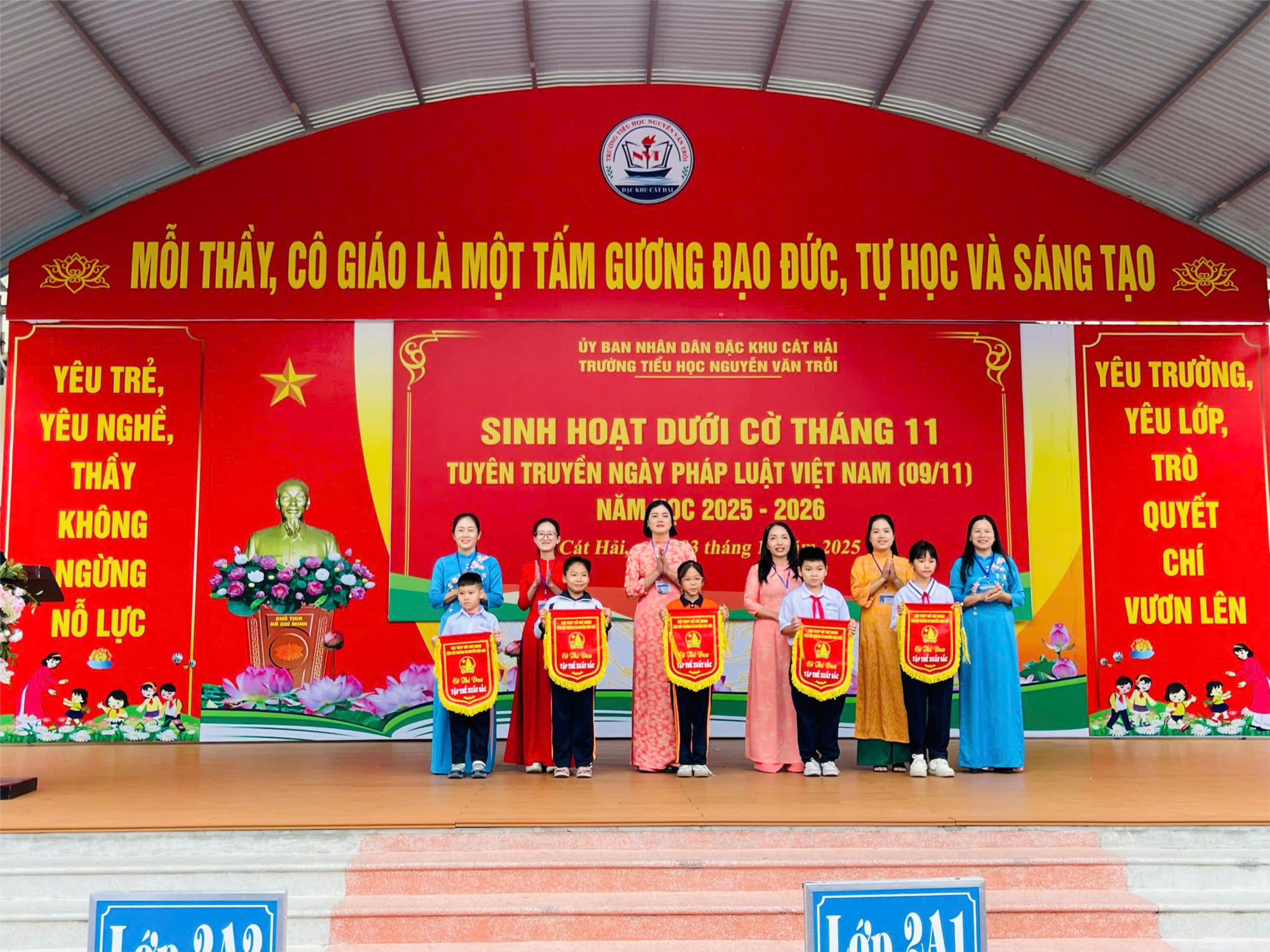 Sáng thứ Hai, ngày 3/11/2025, tại cả ba cơ sở, Trường Tiểu học Nguyễn Văn Trỗi đã long trọng tổ chức Lễ chào cờ và sinh hoạt dưới cờ tháng 11 với chủ điểm “Tôn sư trọng đạo”, lồng ghép tuyên truyền Ngày Pháp luật Việt Nam 9/11.